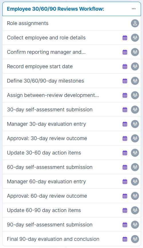 Employee 30/60/90 Review Workflow Tasks