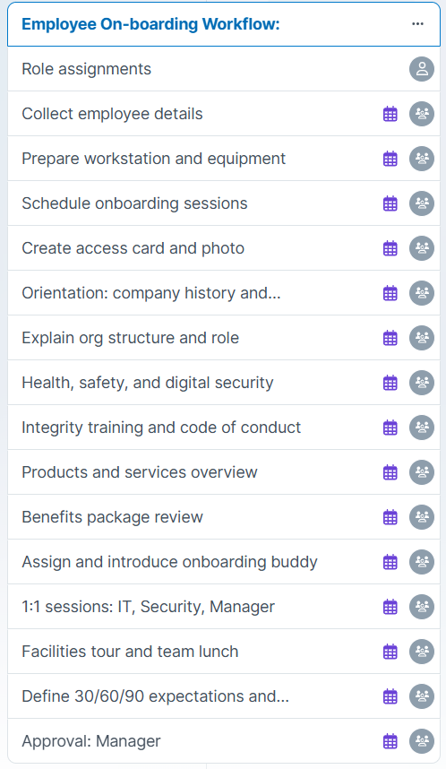 Employee On-boarding Workflow Tasks