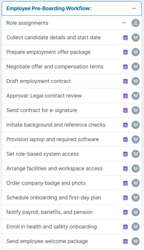 Employee Pre-boarding Workflow Tasks