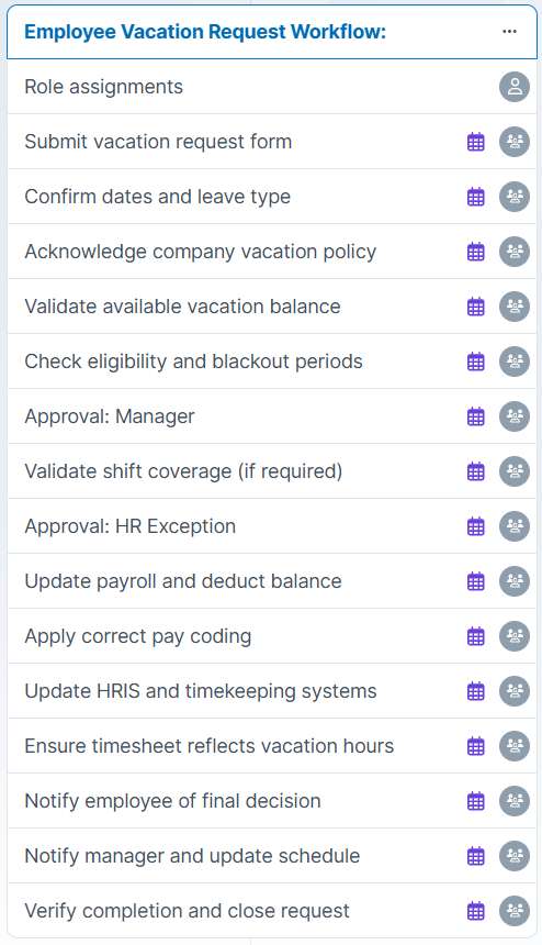 Employee Vacation Request Workflow Tasks