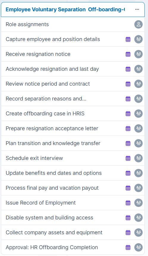 Voluntary Separation Off-boarding Workflow Tasks